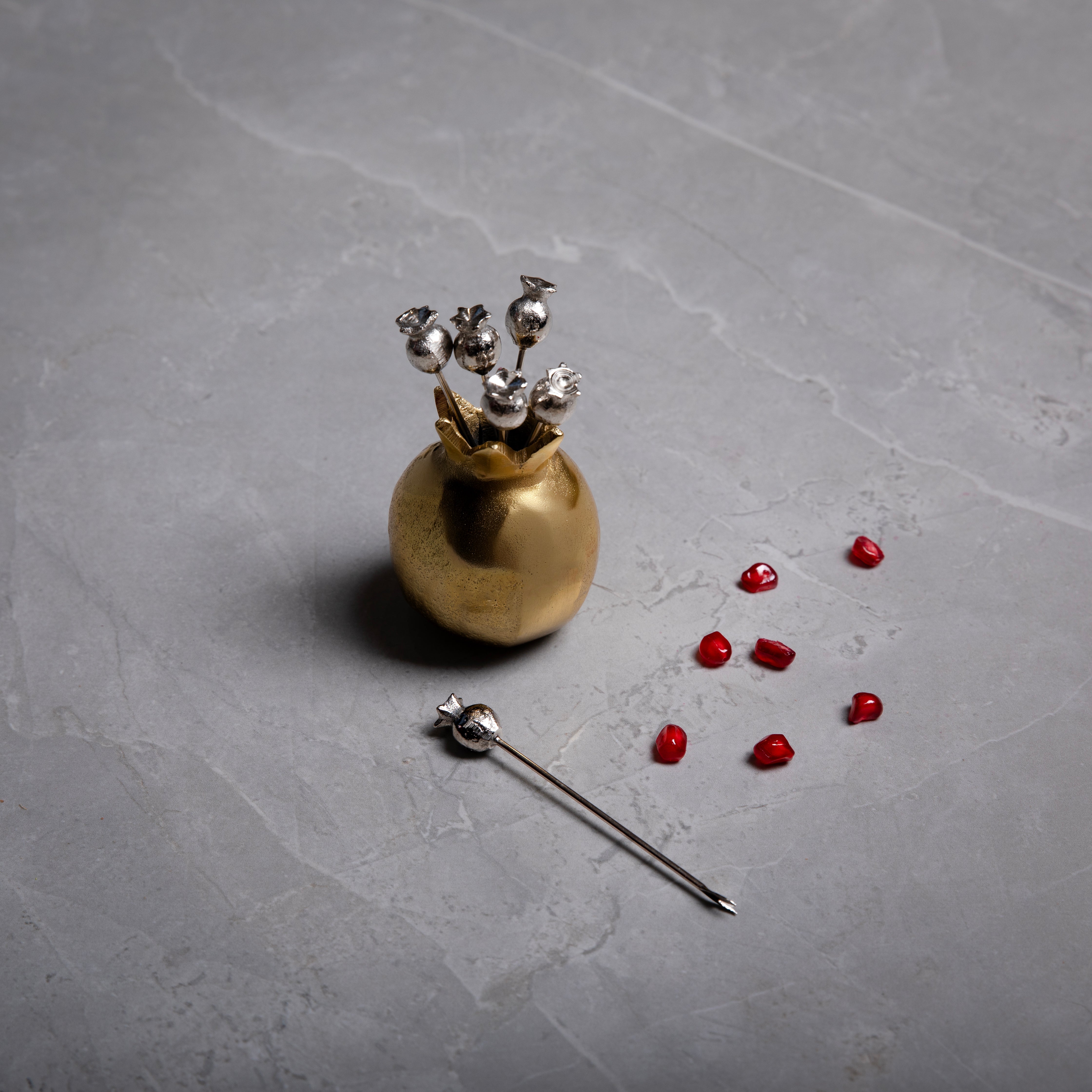 Inspired by the form of the pomegranate, this handcrafted picker adds a touch of cultural charm to the table.